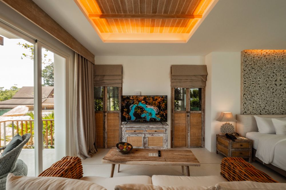 Отель находится на небольшой горке, что делает его живописным. Красивые, но не вычурные интерьеры рецепции, номеров и ресторанов. Территория небольшая, но вся в зелени, имеется большой типа бассейн-аквариум с рыбками. По территории разгуливают павлины, правда без хвостов), ещё какие-то птички среднего размера, серого цвета, напоминают внешне аистов. Ползают варанчики видели одного см 60 и одного больше метра, протопал мимо нас на пляже) есть чему удивляться! Завтраки достойные с горгонзолой, камамбером и яйцом пашот). Фрукты и тд на отлично! Вай фай на территории всего отеля и пляжа приличный. Уборка номеров каждый день на троечку, да и бог с этим ...замена пляжных полотенец в номере, просто оставьте их на стуле как использованные. Фен, чайник, тапочки не одноразовые, пляжная сумка, чайно-кофейный набор,щётка,паста,мыло,шампунь,кондиционер,гель, все есть, можно не возить с собой. Вода литр на человека пополняется каждый день. По инфраструктуре от отеля вниз поселок небольшой, гулять негде, но много кафе и ресторанов, баров. Мы оценили в первый же день My Thai, как спуститесь на перекрестке направо и по левой руке чуть вперёд рядом с супермаркетом. Там всегда много народу. Вкусно и по доброму) 4 маркета в том числе 7/11 у дороги направо. Сувенирка и тд тоже есть. Аптека одна в поселке, так как пришлось ее посетить, показалось что не дешёвая , везите с собой "скорую помощь") Пляж красивый, лежаки, зонтики и тд. Береговая линия песчаная направо для прогулок хороша, дойдите до конца, там речка впадает, а на другой стороне можно увидеть обитателей джунглей, нам посчастливилось)). Налево более каменистая, но тоже живописная, много кафешек, но рекомендуем лучше поселковые, они душевнее. Были в начале октября, сезон дождей здесь это короткие или продолжительные моросящие или ливневые дожди, но нам пребывание не испортили. Неспокойное море, волна была все 10 дней, но хороший бассейн опять же спасал. Дни в основном в это время были солнечными, периодически с облачностью. Всем хорошего отдыха, отель рекомендуем!