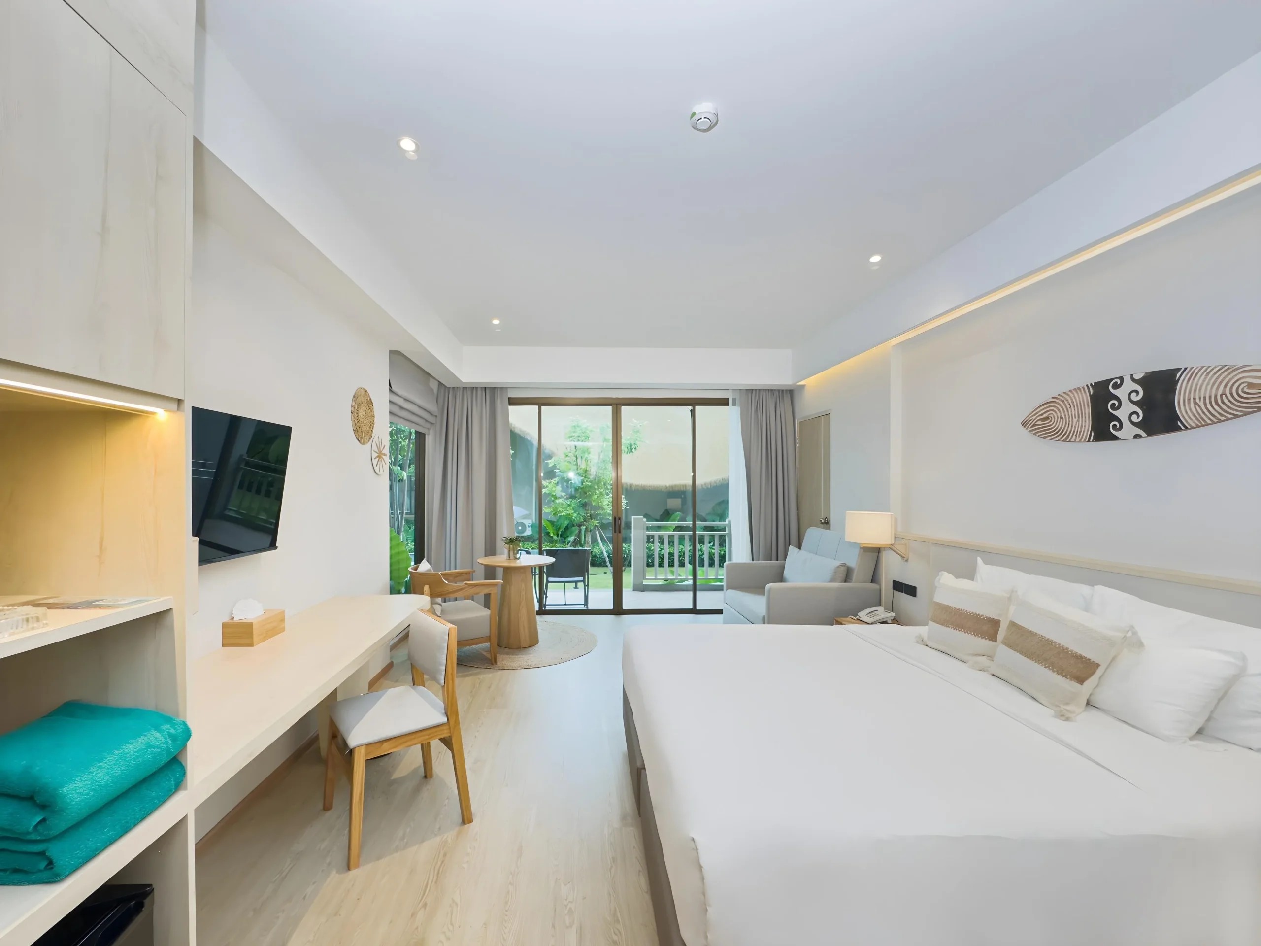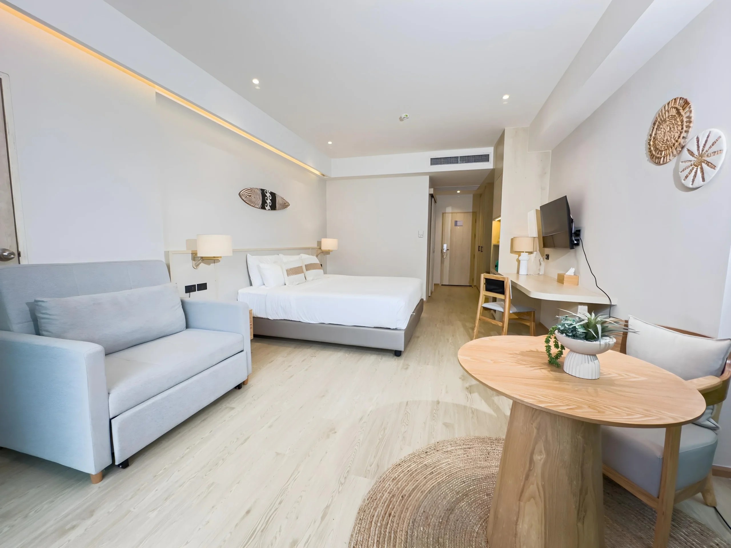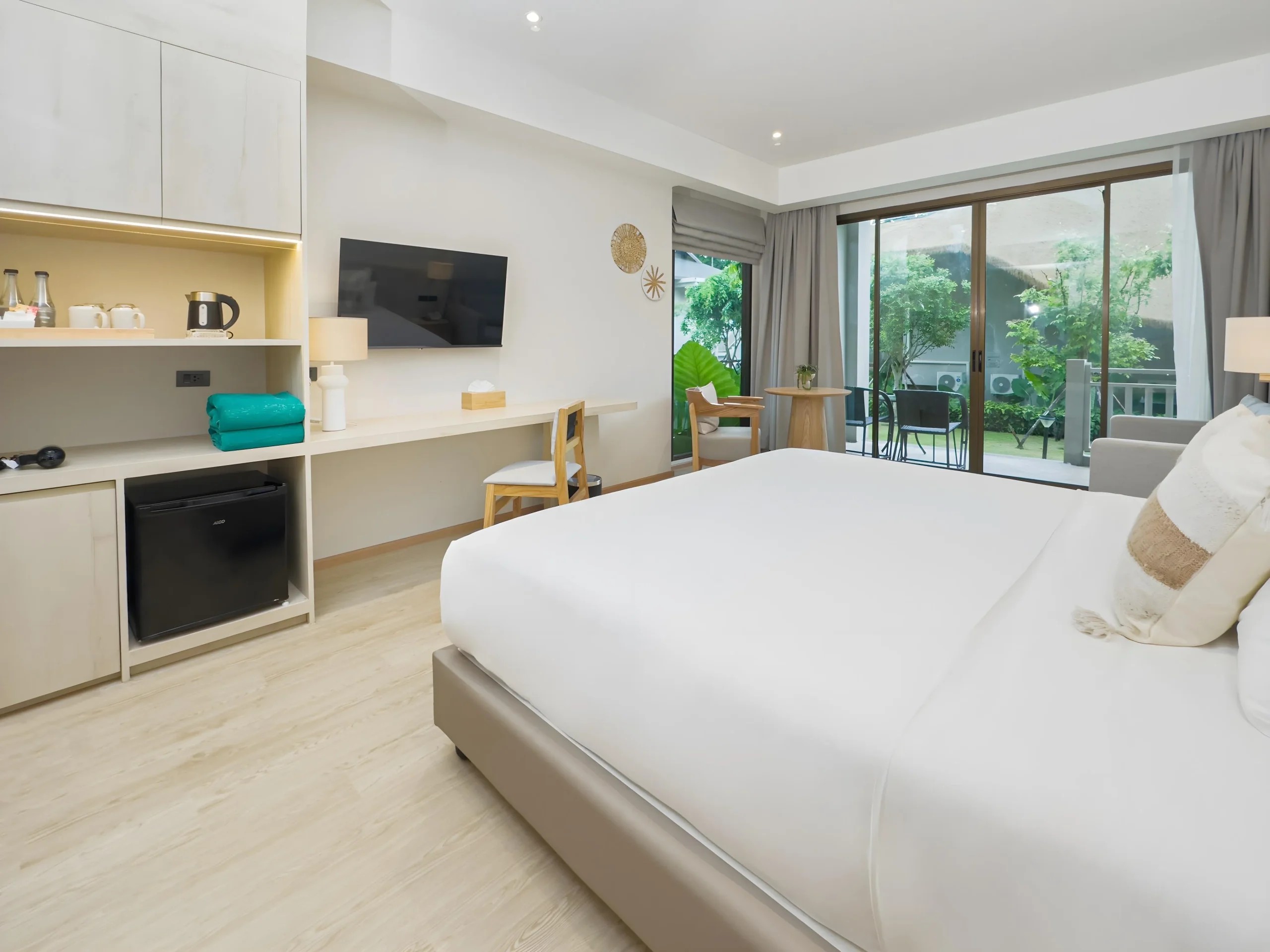 Отель вполне понравился, но многое зависит от того, куда вас поселят, и вашего настроения. Если цена за отель не оверпрайс, и вы ищите спокойное и тихое место, однозначно стоит. Номера: номера в новом корпусе(который с отдельным бассейном)просторные, сейф и холодильник есть. По чистоте нормально, единственное это тайские насекомые, большой паук жил на соседнем диване. Полотенца меняют если оставить на полу их. Постельное белье меняли в роде бы раз. И один раз, даже забыли убрать номер. Есть балкон. Для кого-то может это будет минус, окна в пол, и выходят на соседние окна, вечером придется закрывать шторы. Кондер работает отлично. Комаров видели всегда пару штук за все время. Персонал и обслуживание: Персонал классический, не навязчивый. Русский не знают,с английским тоже проблема, даже у тех кто на ресепшене. Уборка номера не зависит от чаевых, у нас без чаевых убрали лучше чем за 200батт. Уборка каждый день не идеально, но песок убирали, мусор выносили. Территория: территория большая, красивая, зеленая. Большой пруд с живностью. несколько корпусов, отдельных домиков. Самый новый и лучший корпус, это бывший отель hive, с отдельным бассейном, он после ремонта, но окна выходят на приватный бассейн, кому то такое не нравится, придется держать шторки прикрытыми. На старые корпуса, часть людей жалуются, из-за уставшей местами мебели, особенно который выходят на техническую часть отелей, там грязновато. Остальные корпуса обычные, не плохо и не идеально. Еда: брали только завтраки, довольно однообразно, но позиций хватает, и острой еды почти нет. Кофе готовят как и везде, не вкусный. Развлечения: на территории два бассейна и один приватный, а так же детский бассейн с горками, жезлонги после 10 утра редко есть свободные. Имеется не большой спортзал, кафе, настольный теннис, бар на территории. Пляж и море: территория сразу у береговой линии. Людей мало, т.к. пляж довольно длинный, но на этой территории отелей малой. Песок так себе, белоснежного или чисто золотистого тут нет, из-за иголок от хвойных деревьев. Вода зеленоватая и мутная если волны,из-за те же хвой, а так же сам песок, который больше похож на мелкий отсев и поднимается волнами. Спуск нормальный, не резкий, но из-за волн отсев часто поднимается к берегу, и приятный песок будет не сразу. Для дайвинга тут пусто, живности нет. Слева и справа, будут очень красивые места с валунами, где можно сделать красивые фото, или найти рыбок. Расположение: находятся в 5 км от самого большого поселка, Као Лак. Добираться до рынка, или других мест в поселке только на местных тук туках(такси) около 300 бат, но их хватает на улице. Улица не большая, метров 500. Есть около десяти кафе/ресторанов, с едой как тайской, так и европейской. несколько точек продажи фруктов, заезжают мопеды с блинами и курицей гриль местной. Магазинов 4 штуки, в том числе 7/11.