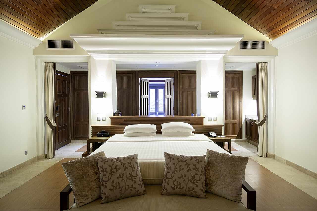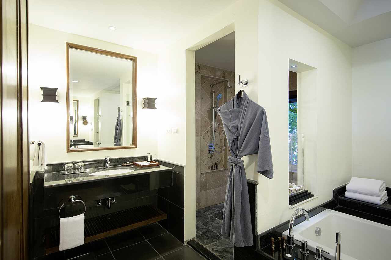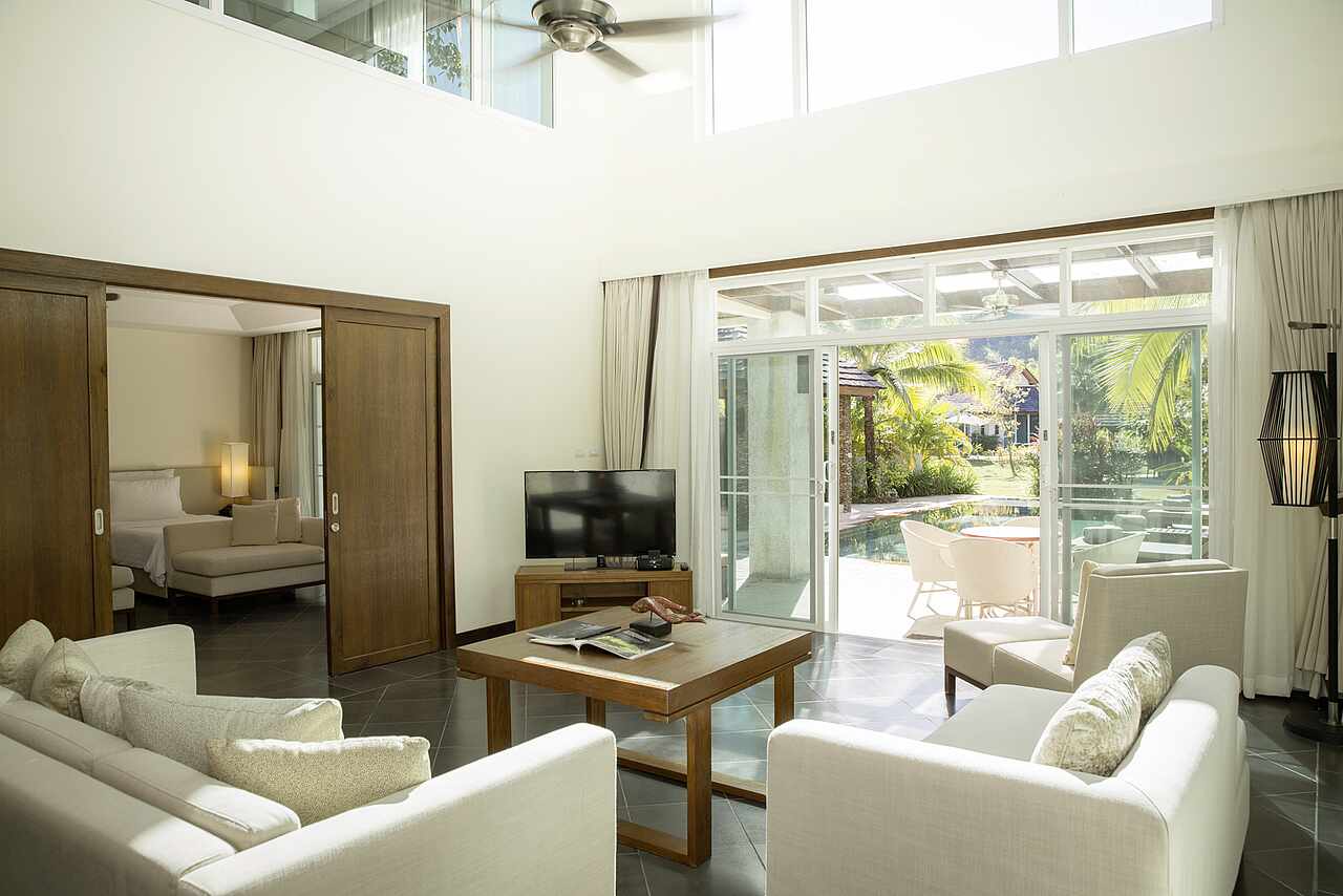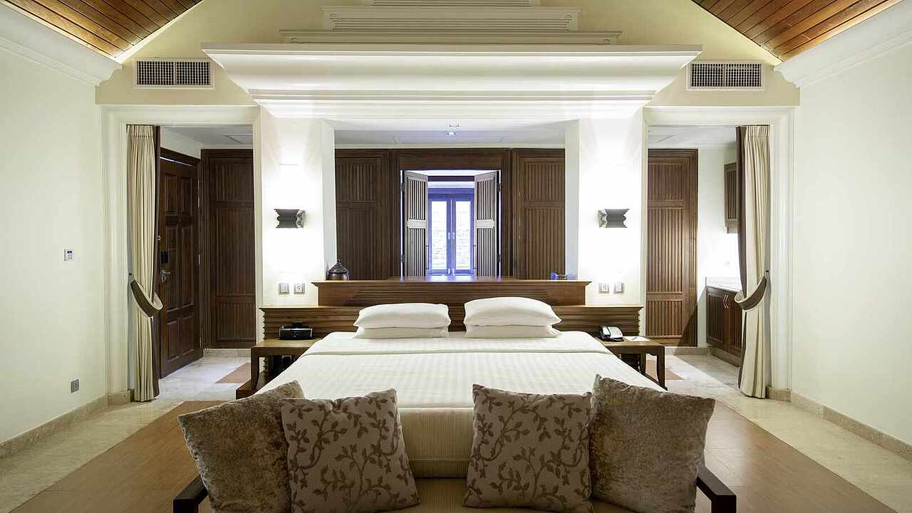 Двухкомнатный номер включает 2 спальни и 2 санузла с душем, ванной. Гости размещаются на 2 двуспальных кроватях. К услугам гостей кондиционер, 2 телевизора, телефон, холодильник, сейф, фен, туалетные принадлежности. С балкона/террасы открывается вид на сад или бассейн.
