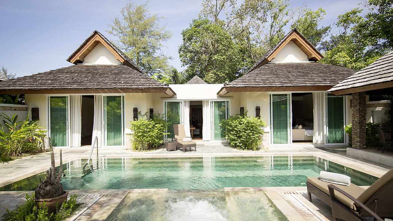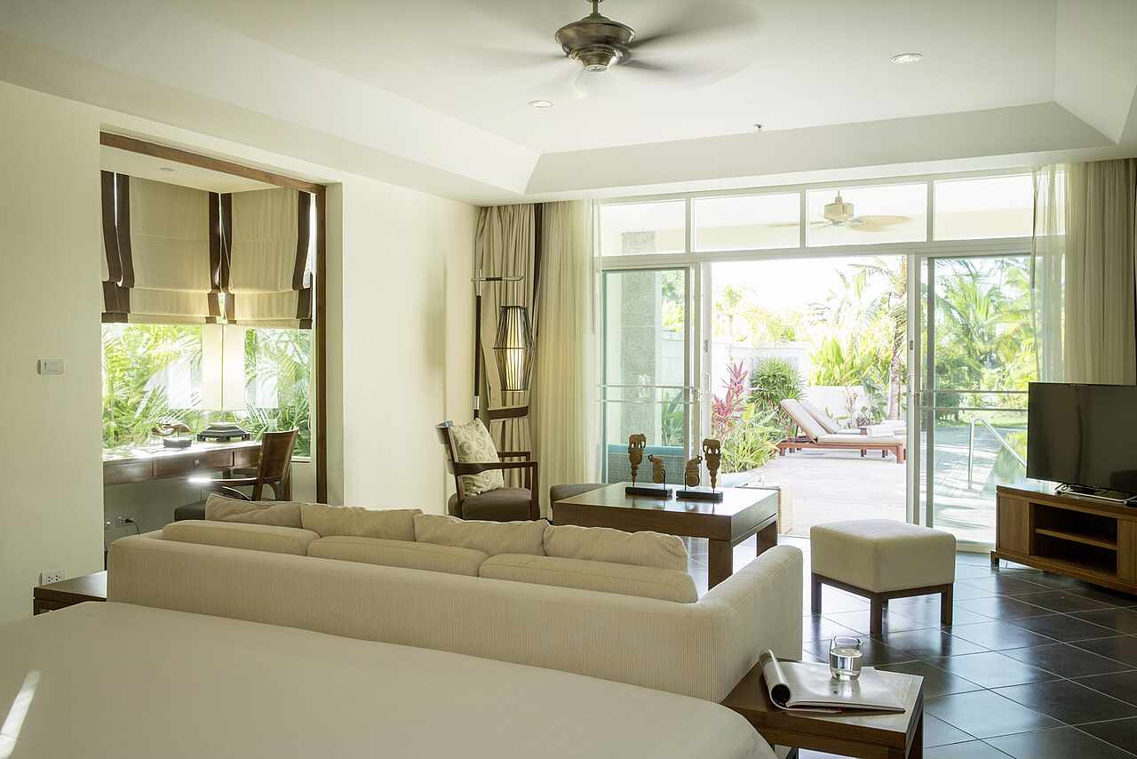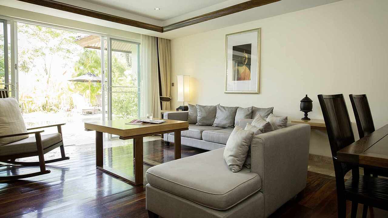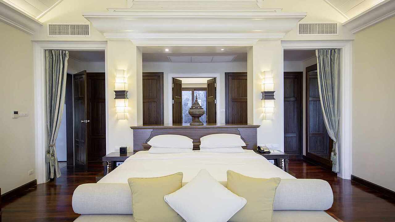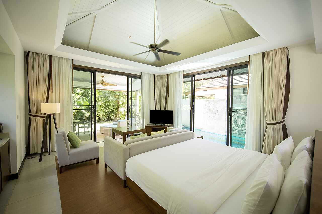 Двухкомнатный номер включает 2 спальни и 2 санузла с душем, ванной. Гости размещаются на 2 двуспальных кроватях. К услугам гостей кондиционер, 2 телевизора, телефон, холодильник, сейф, фен, туалетные принадлежности. С балкона/террасы открывается вид на сад или бассейн.