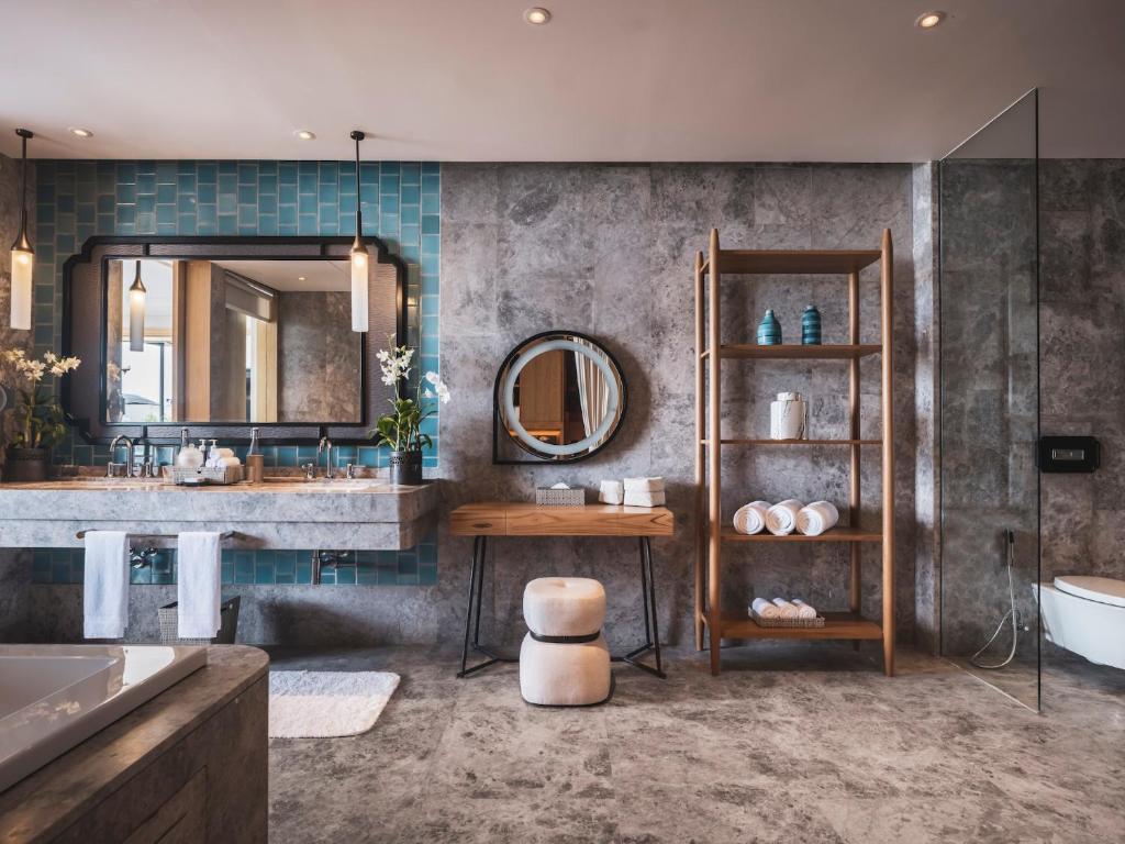 Комфортабельный люкс с просторным балконом/террасой, стеклянными дверями от пола до потолка, спальней с двуспальной/2 раздельными кроватями, гостиной зоной, ванной комнатой с тропическим душем и ванной, феном, спа-средствами. В числе удобств Wi-Fi, кондиционер, телевизор, сейф, мини-бар, телефон, кофеварка, халаты и тапочки.